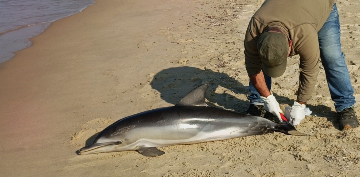Kuşadası Güzelçamlı sahilinde kumsala bir yunusun vurduğu ihbarı geldi. Yapılan ihbarın ardından bölgeye giden Ekosistemi Koruma ve Doğa Sevenler Derneği yetkilileri, Yunus üzerinde yaptıkları incelemelerde, 138 santimetre boyutunda bilimsel adı Delphinus delphis türü juvenil bir birey olduğu tespit edildi. Yapılan kontrollerde bir gözünde ve alt çenesinde delinmiş bir doku tahribatı olduğu görüldü. Yunusun hedef dışı av olarak ağlara yakalandığı ve nefes almak için su yüzeyine çıkamadığından boğulduğu tahmin ediliyor.