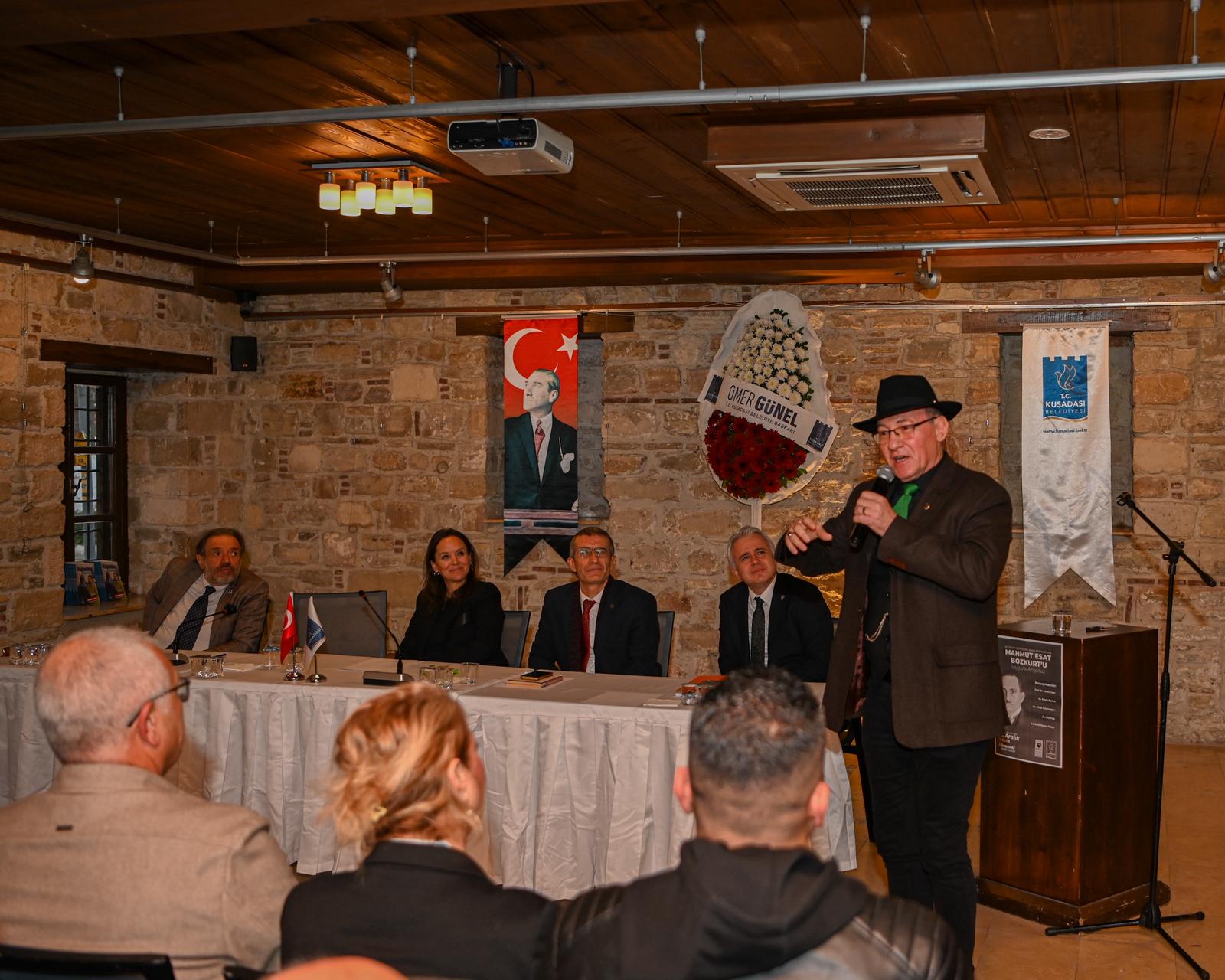 Kuşadası Belediyesi ile Atatürkçü Düşünce Derneği Kuşadası Şubesi iş birliğiyle İbramaki Sanat Galerisi’nde gerçekleştirilen programa ilgi yoğun oldu. Yaklaşık iki saat süren etkinliğe belediye meclis üyeleri, Cumhuriyet Halk Partisi Kuşadası İlçe Başkanı Mehmet Gürbilek, ADD Kuşadası Şube Başkanı Ferah Sürekçi ve Bozkurt’un gelini Nazan Bozkurt katıldı.