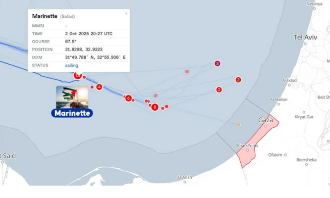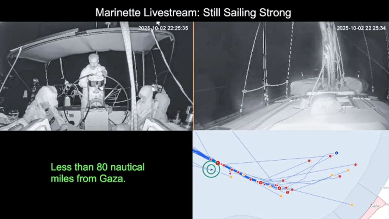 İsrail ordusu, önceki gece Küresel Sumud Filosu’na müdahale ederek çok sayıda gemiye el koydu, yüzlerce aktivisti alıkoydu. Filonun en gerisinde seyreden Marinette, şu anda yalnız bir şekilde rotasını Gazze’ye doğru sürdürüyor.