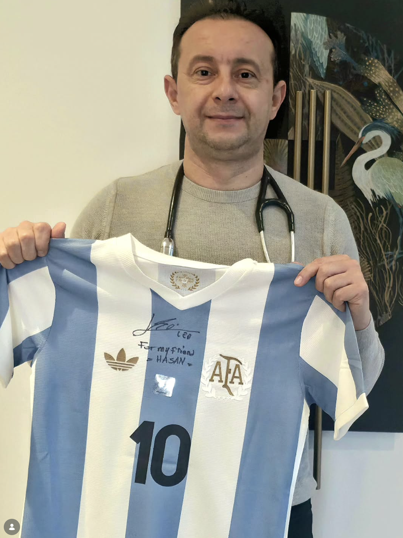 “Dünya futbolunun efsane ismi Messi tarafından adıma özel olarak ‘For my friend Hasan’ şeklinde imzalanan bu forma, koleksiyonumun en özel alanında yerini aldı.”