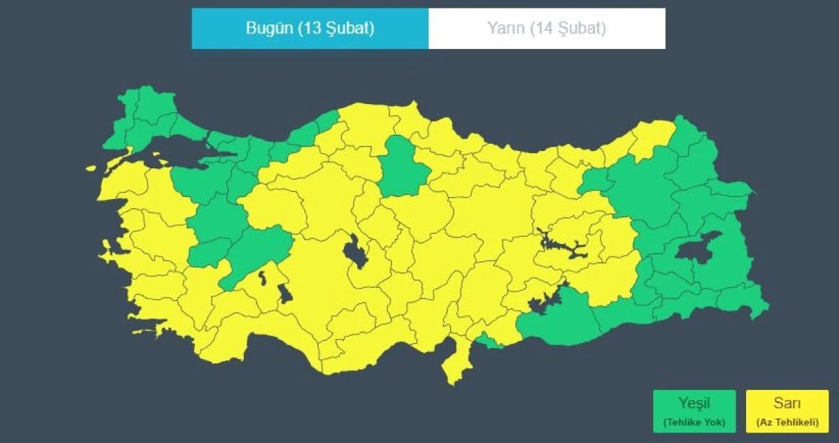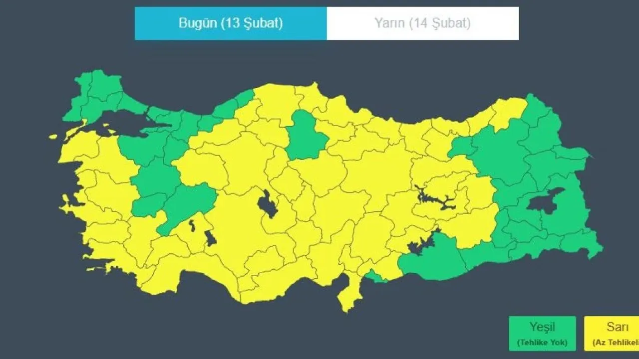 Cuma 13 Şubat 2026: Yurt genelinde yağışlı hava hakim. Marmara, Ege, Akdeniz, İç Anadolu ve Karadeniz bölgelerinde sağanak ve yer yer gök gürültülü sağanak yağış bekleniyor. Doğu Anadolu’nun yüksek kesimlerinde ise karla karışık yağmur ve kar yağışı öne çıkıyor.