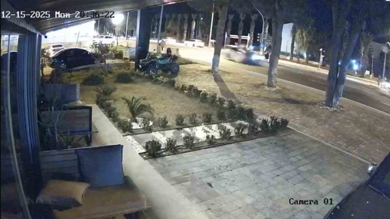 Çevredeki bir iş yerinin güvenlik kamerasına yansıyan görüntülerde, motosikletin yolun karşısına geçmeye çalıştığı sırada otomobilin büyük bir hızla çarptığı, çarpmanın etkisiyle motosiklet ile sürücüsünün adeta ok gibi savrulduğu görüldü. Kazayla ilgili soruşturma başlatıldı.