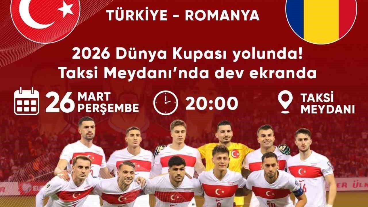 Dünya Kupası Avrupa Elemeleri Play-Off Yarı Finali kapsamında oynanacak karşılaşma, bugün saat 20.00'de Taksi Meydanı'nda kurulacak dev ekranda canlı olarak izlenebilecek.