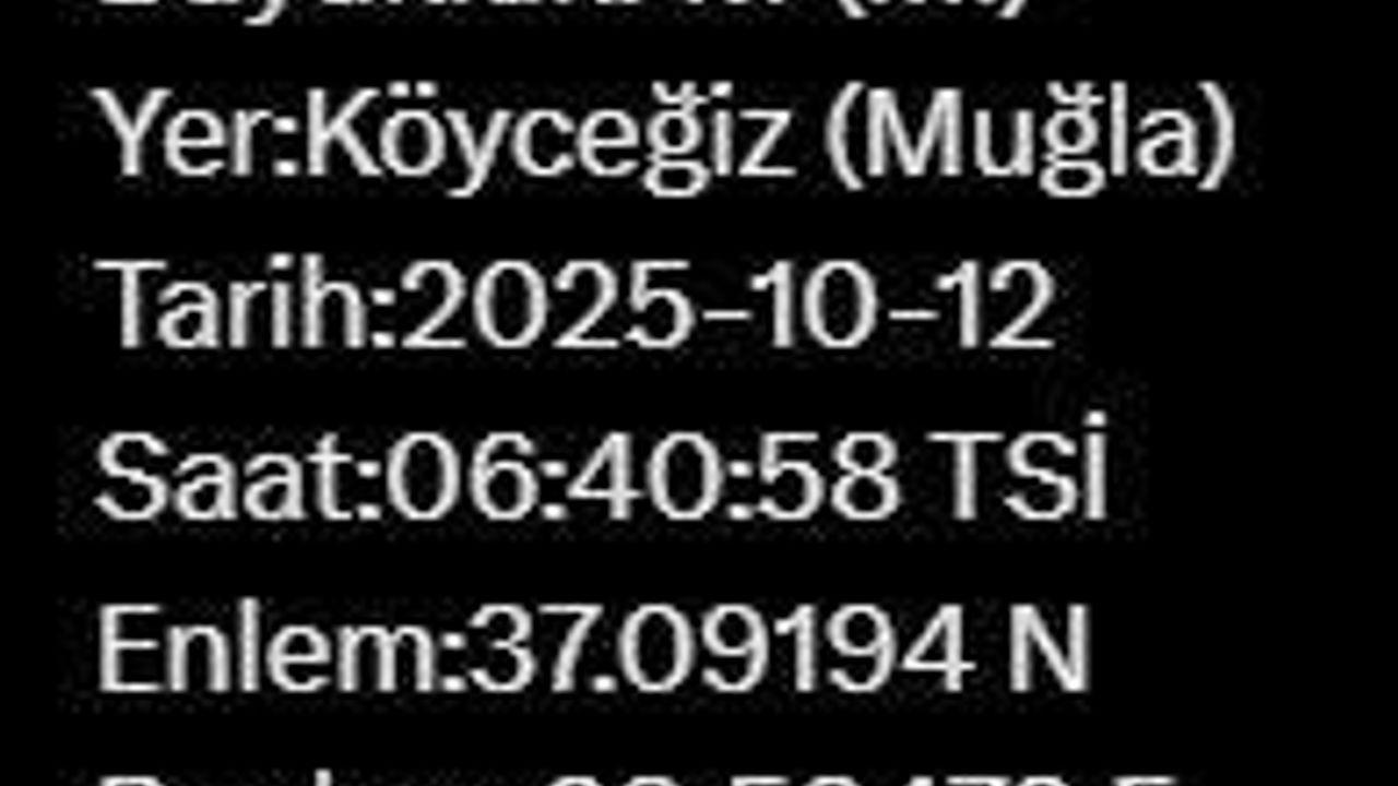 AFAD’ın paylaştığı bilgilere göre, Muğla’nın Köyceğiz ilçesinde saat 02.54’te 4.1 büyüklüğünde deprem meydana geldi. Merkezi Köyceğiz ilçesi olan depremin derinliği 12.01 kilometre olarak ölçüldü.