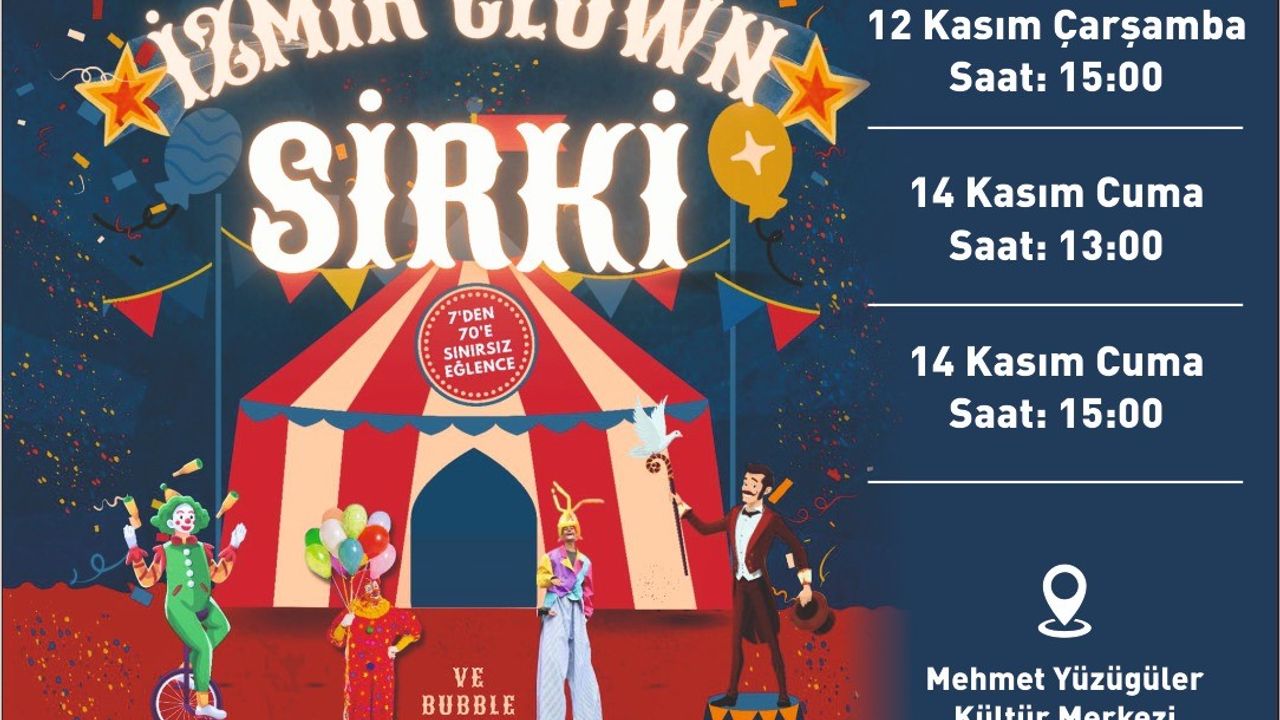 Clown performansları, jonglör, tahta bacak, illüzyon ve bubble show gibi birçok eğlenceli gösterinin yer alacağı sirk, 12 Kasım Çarşamba günü saat 13.00 ve 15.00’te, 14 Kasım Cuma günü yine saat 13.00 ve 15.00’te Mehmet Yüzügüler Kültür Merkezi’nde çocuklarla buluşacak.