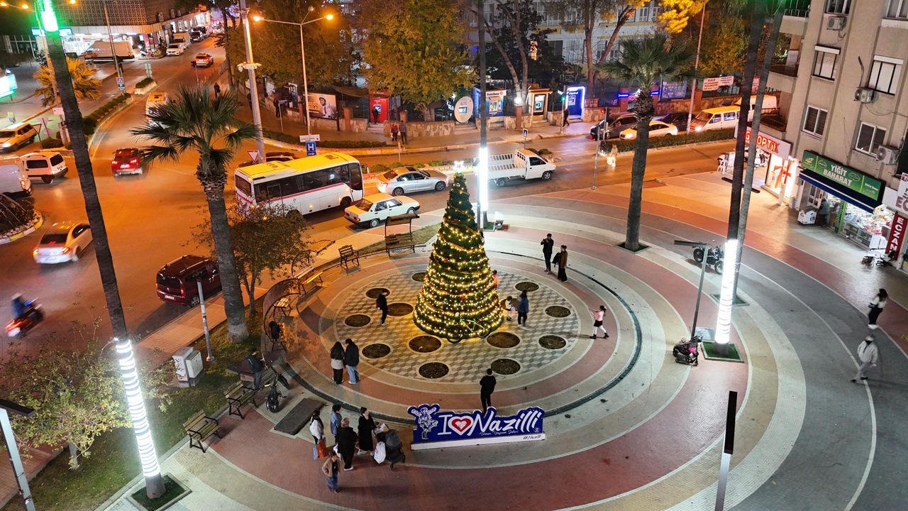 Belediye ekiplerince sürdürülen çalışmalar kapsamında, meydanda bulunan dev “Nazilli” yazısının arka bölümüne 6 metre yüksekliğinde yılbaşı ağacı yerleştirildi. Her gün binlerce kişinin uğrak noktası olan meydan, yapılan süslemelerle birlikte akşam saatlerinde ışıl ışıl bir görünüme kavuştu.