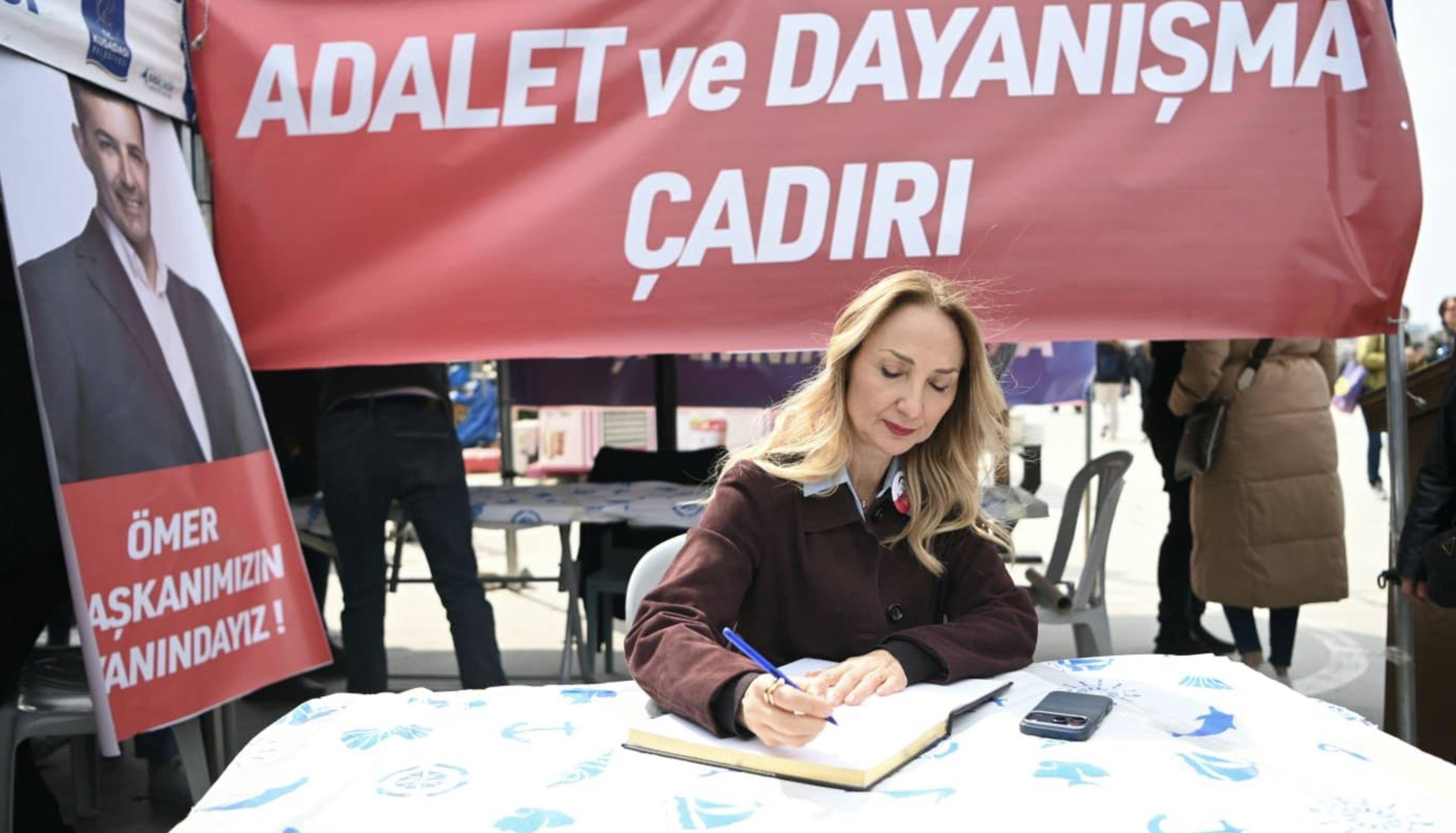 Basın açıklamasının ardından sahil bandını dolaşan Nazlıaka, vatandaşlarla sohbet ederek Başkan Günel’in gözaltına alınmasına ilişkin düşüncelerini paylaştı. Nazlıaka ayrıca Adalet ve Dayanışma Çadırı’nda bulunan dayanışma defterine duygu ve düşüncelerini yazdı.
