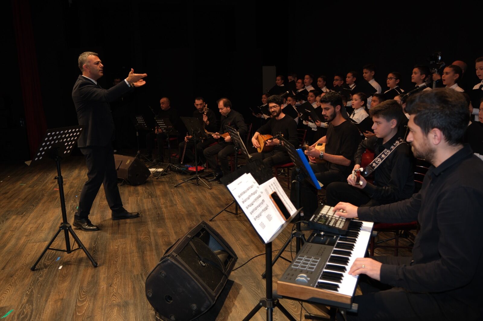 Saygı duruşu ve İstiklal Marşı ile başlayan törende, öğrencilerin sergilediği müzik dinletisi geceye damga vurdu. Bu özel gün için kendi sözlerini yazıp besteleyen minik öğrenciler, koro halindeki uyumları ve performanslarıyla salondan büyük alkış aldı. Atatürk’ün Aydın ziyaretinin tarihsel öneminin vurgulandığı programda, duygu dolu anlar yaşandı.