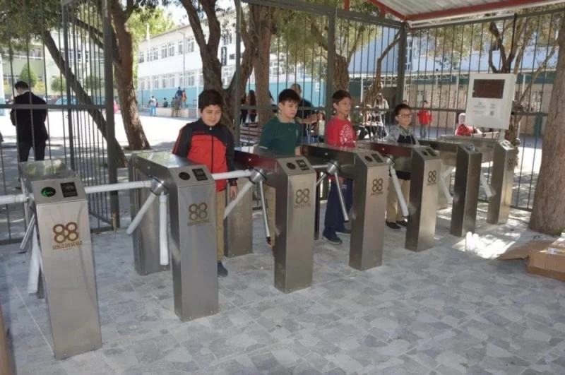 Geçtiğimiz haftadan bu yana polislerin beklediği okul kapılarına artık turnike de konulacak.