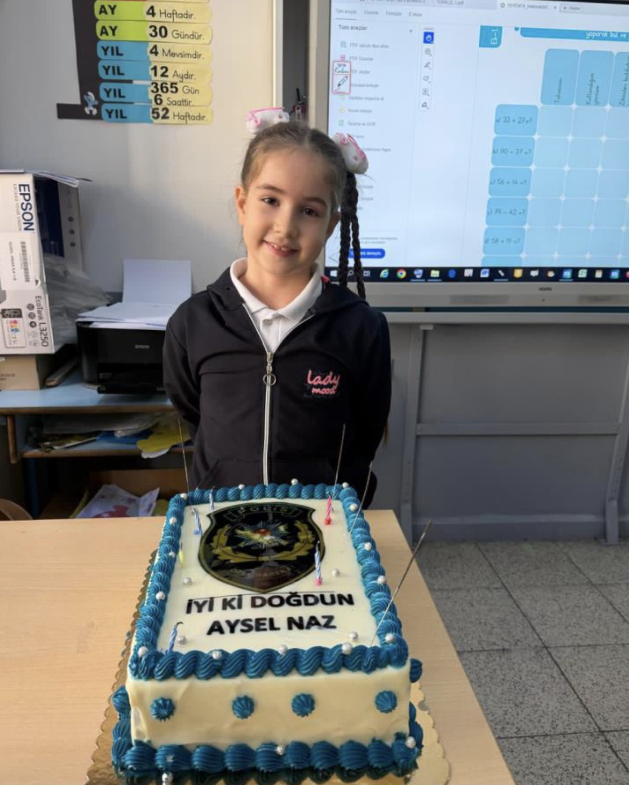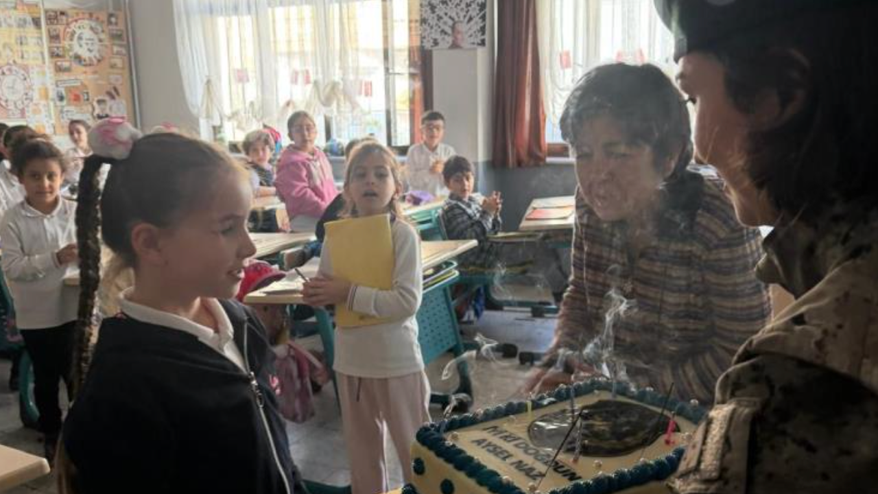 İlkokul ikinci sınıf öğrencisi olan Aysel Naz’ın sınıfına giden Özel Harekat polisleri, pasta ile sınıfa girerek doğum gününü kutladı. Duygusal anların yaşandığı kutlamada minik Aysel Naz’ın mutluluğu dikkat çekti.