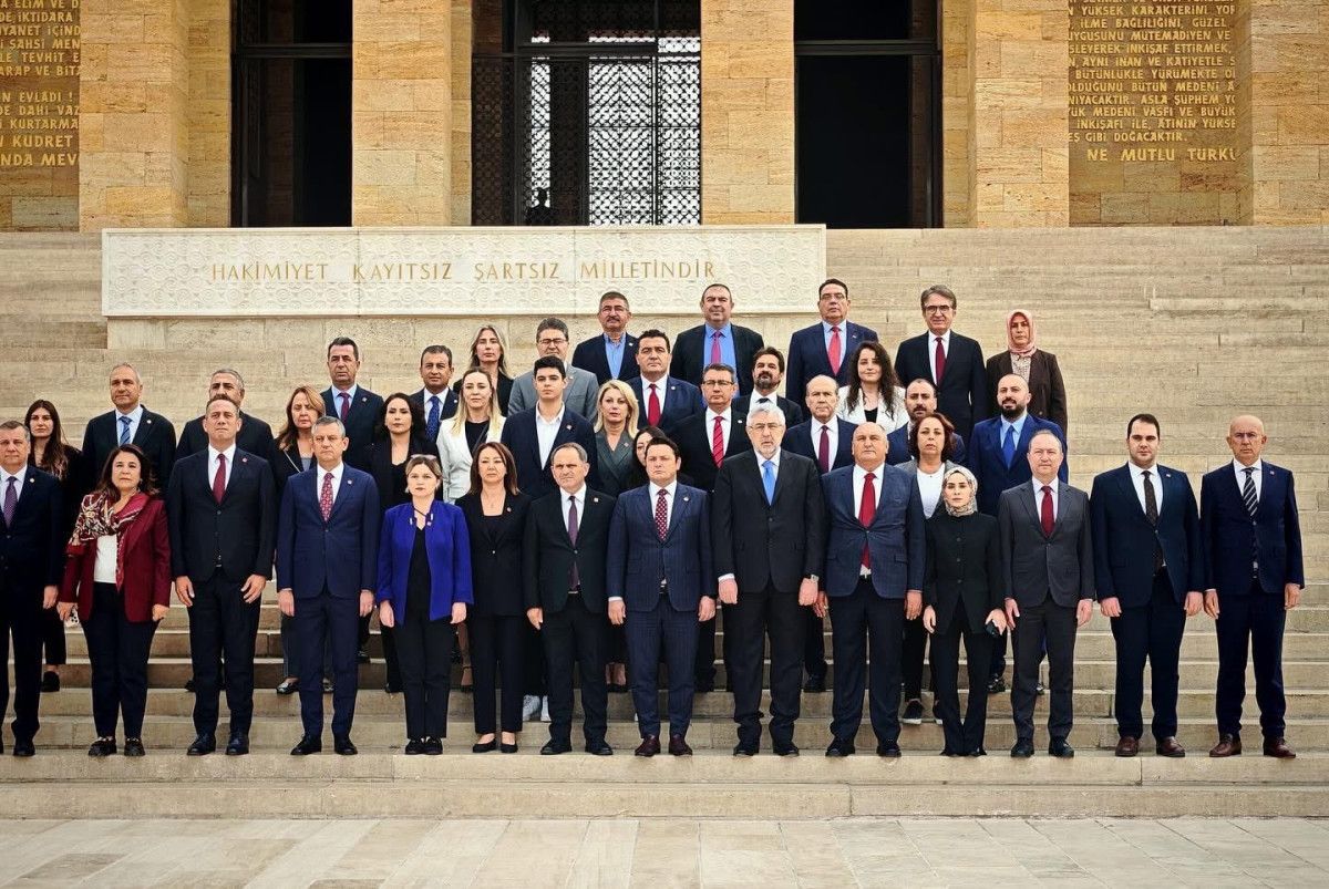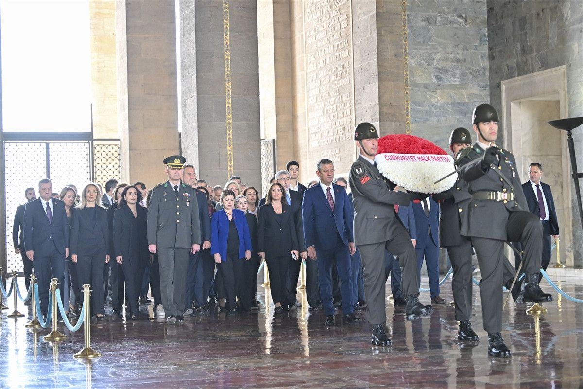 CHP Genel Başkanı Özgür Özel, 22. Olağanüstü Kurultay’da seçilen Parti Meclisi, Yüksek Disiplin Kurulu üyeleri ve milletvekilleriyle birlikte Anıtkabir’e geldi. Aslanlı Yol’dan yürüyerek Atatürk’ün mozolesine çelenk bırakan heyet, saygı duruşunda bulundu.