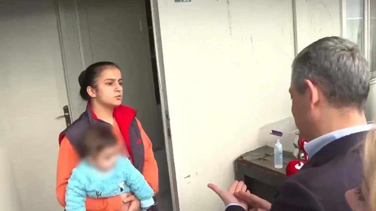 O sırada bebeğiyle konteyner kentte kalan bir kadın, Özgür Özel'e bazı şikayetlerde bulundu.