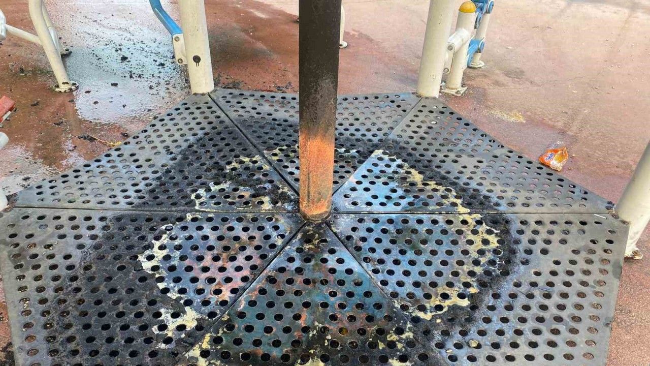 Parkta oynaması için çocuklarını getiren ebeveynler oyuncağın yanması üzerine çocukların zarar görmesinden korkarak, milli servete zarar veriliyor diye tepki gösterdi.