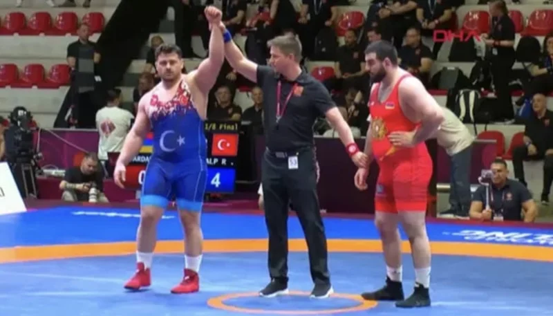 2 kez Avrupa Şampiyonu olan Rıza Kayaalp, Arnavutluk’ta bugün başlayan şampiyonadki ilk müsabakasında, Ermeni rakibi Albert Vandanyan karşısında tuşla kazandı.