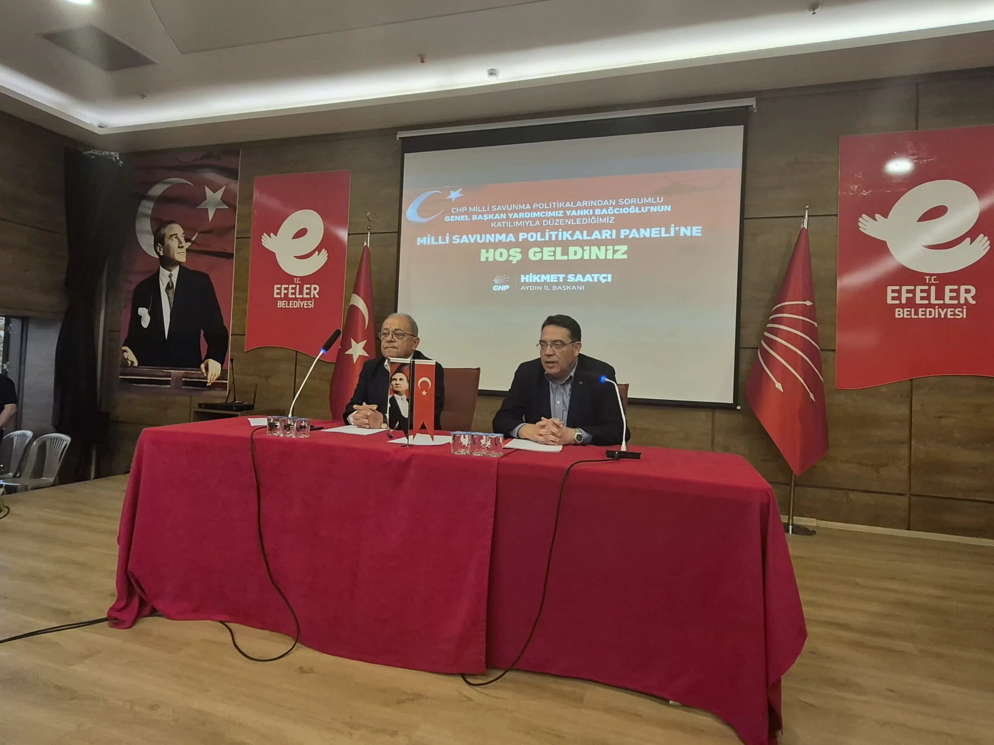 Panelde açılış konuşmasını yapan CHP Aydın İl Başkanı Hikmet Saatçı, “Milli savunma, yalnızca silah sistemlerinden, askeri teknolojiden ya da sınır güvenliğinden ibaret değildir.