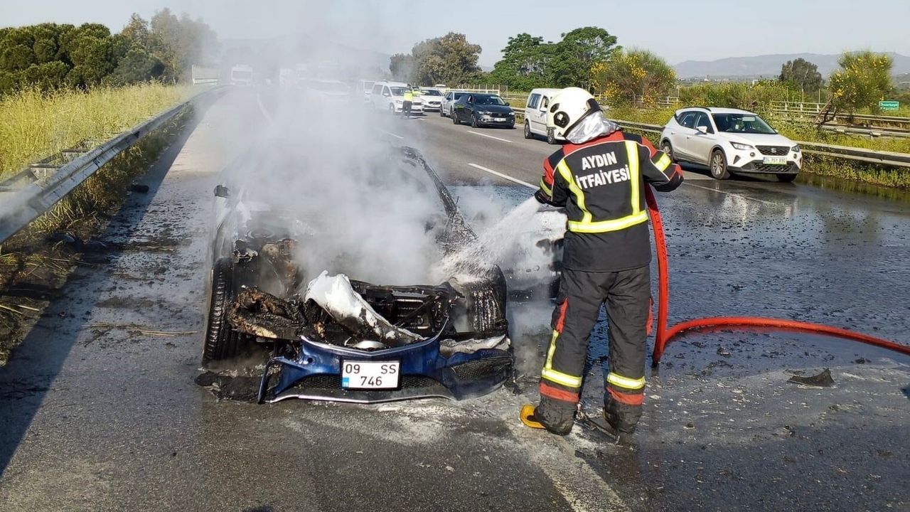 Araç sürücüsü aracını yol kenarına çekerek Acil Çağrı Merkezi’nden yardım istedi. Olay yerine gelen Aydın Büyükşehir Belediyesi itfaiye ekipleri sevk edildi. Olay yerine gelen ekipler otomobildeki yangına müdahale etti. İtfaiye ekipleri otomobildeki yangını söndürürken, araç kullanılmaz hale geldi.