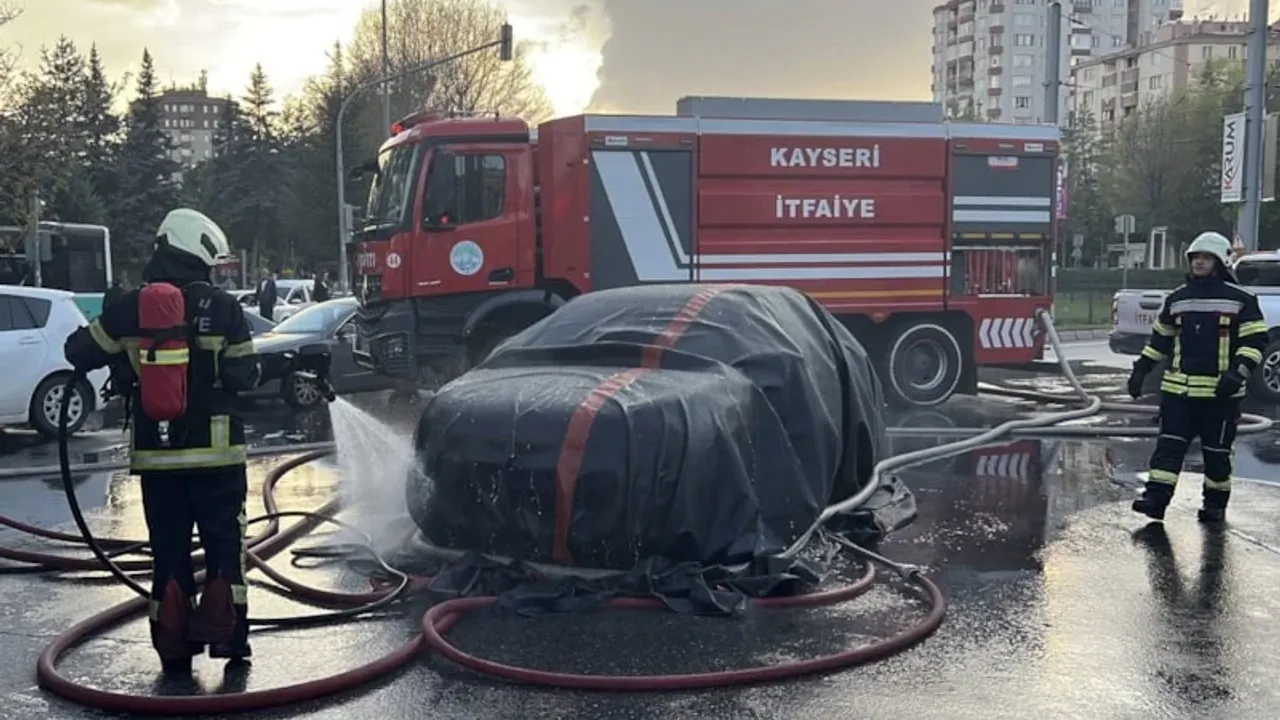 Kayseri'nin Melikgazi ilçesi Alparslan Mahallesi Sivas Bulvarı'nda Z.K. idaresindeki 06 UM 3818 plakalı elektrikli otomobil, seyir halindeyken alev aldı.