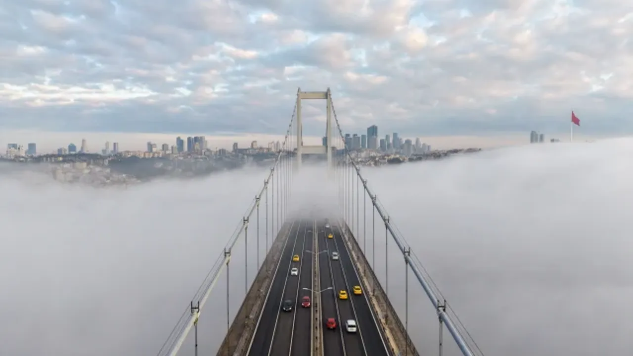 Gün doğumuyla birlikte sis bulutlarının arasından yükselen 15 Temmuz Şehitler Köprüsü silueti, ortaya görsel bir şölen çıkardı. Sisle birlikte süzülen gün ışığı, İstanbul siluetine farklı bir atmosfer kazandırdı.