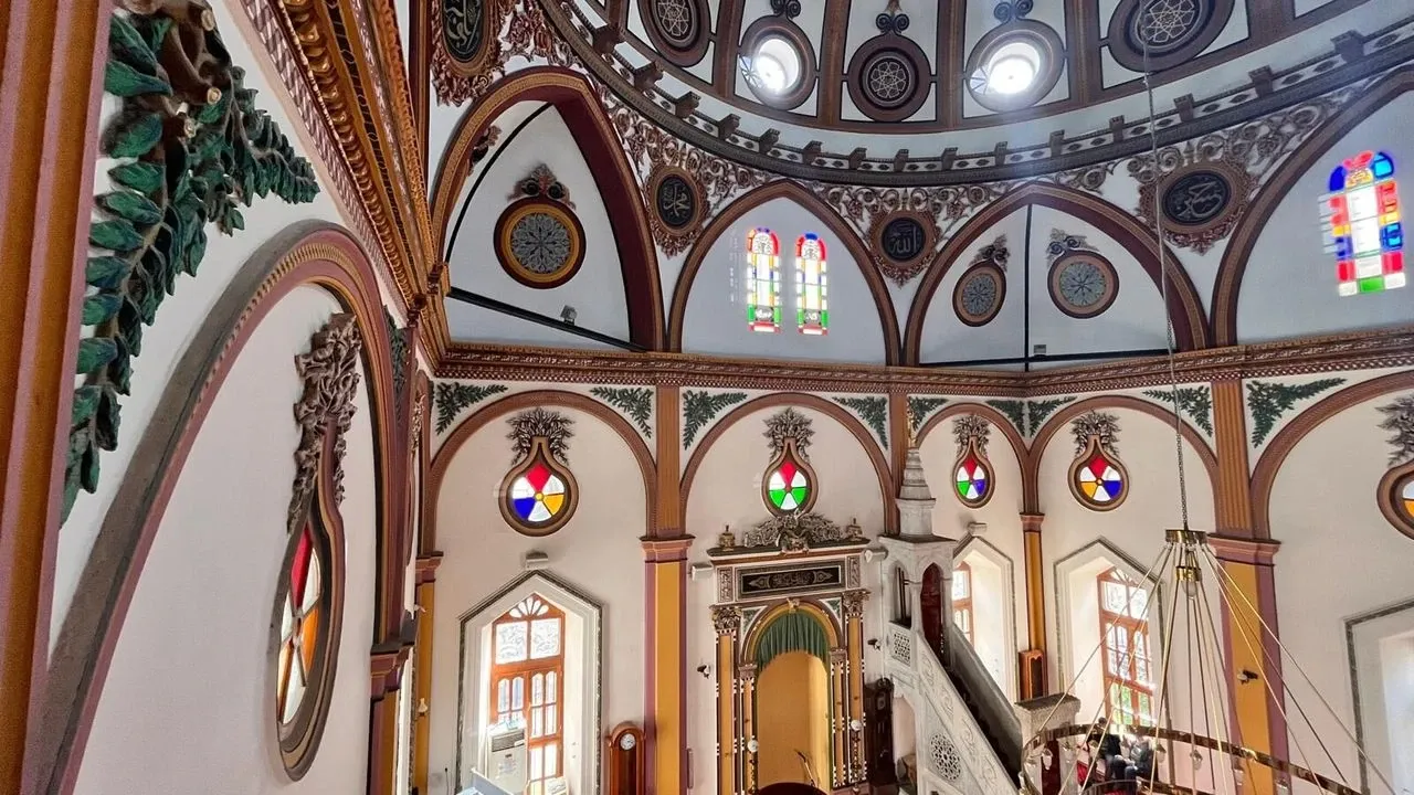 Cami, kare planlı olup, kesme taştan yapılmış. Kubbe kasnağındaki yuvarlak pencereler barok kıvrımlarla çevrelenmiştir. Ahşap giriş kapısı, oyma işleri ile bezenmiştir. Yapının üzeri büyük bir kubbe ile örtülmüştür.İçerisini barok üslubu anımsatan on uzun pencere ve su damlacığı şeklindeki küçük pencereler aydınlatmaktadır. Alçı kabartmalar, renkli cam işçiliği ve ağaç oymacılığı bakımından süslemeleri önemlidir. Caminin iç bezemesi bütünüyle barok üsluptadır.