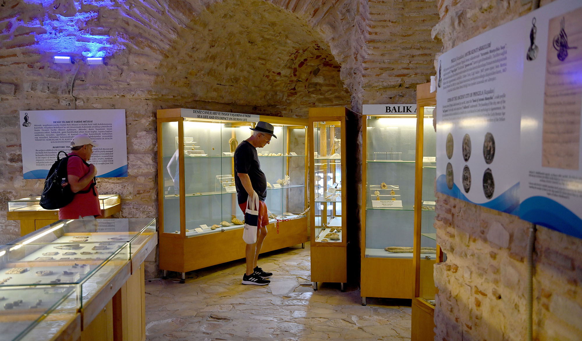 Türkiye'nin ilk tematik deniz ticaret tarihi müzesi olan ve Haluk Perk Vakfı iş birliğiyle açılan ‘Deniz Ticaret Tarihi Müzesi’, ev sahipliği yaptığı zengin eser koleksiyonu kadar tarihi konumu ve eşsiz manzarası ile de dikkat çekiyor. Deniz Ticaret Tarihi Müzesi’nde balıkçılık, gemi batıklardan çıkan ticari kaplar, taşıma kapları, amforalar, cep terazileri, ağırlıklar, el kantarları ve sikke gibi çeşitli objeler sergileniyor. UNESCO Dünya Mirası Geçici Listesi'nde yer alan Güvercinada Kalesi'ndeki Deniz Ticaret Tarihi Müzesi, bu yönüyle kruvaziyer gemilerinden inen yabancı turistler tarafından yoğun ilgi görüyor.
