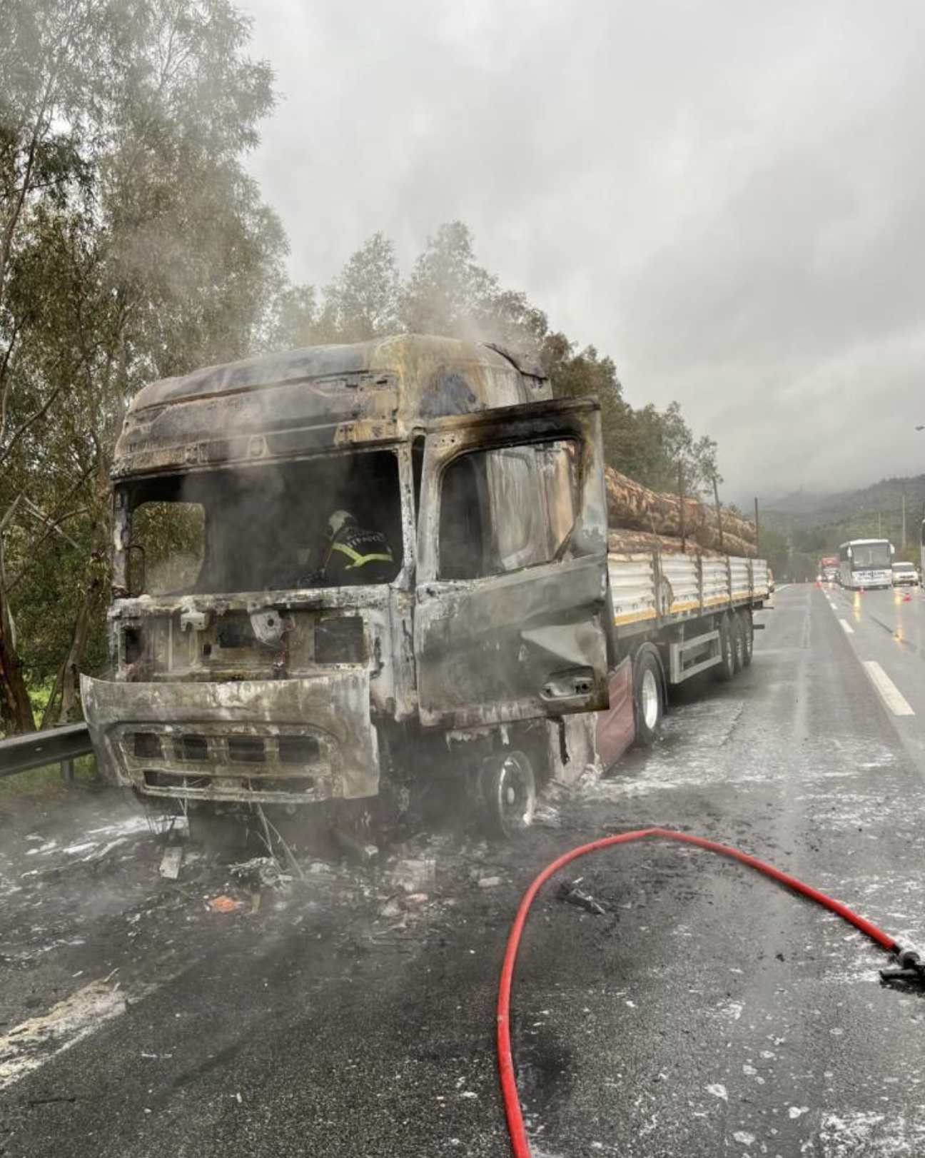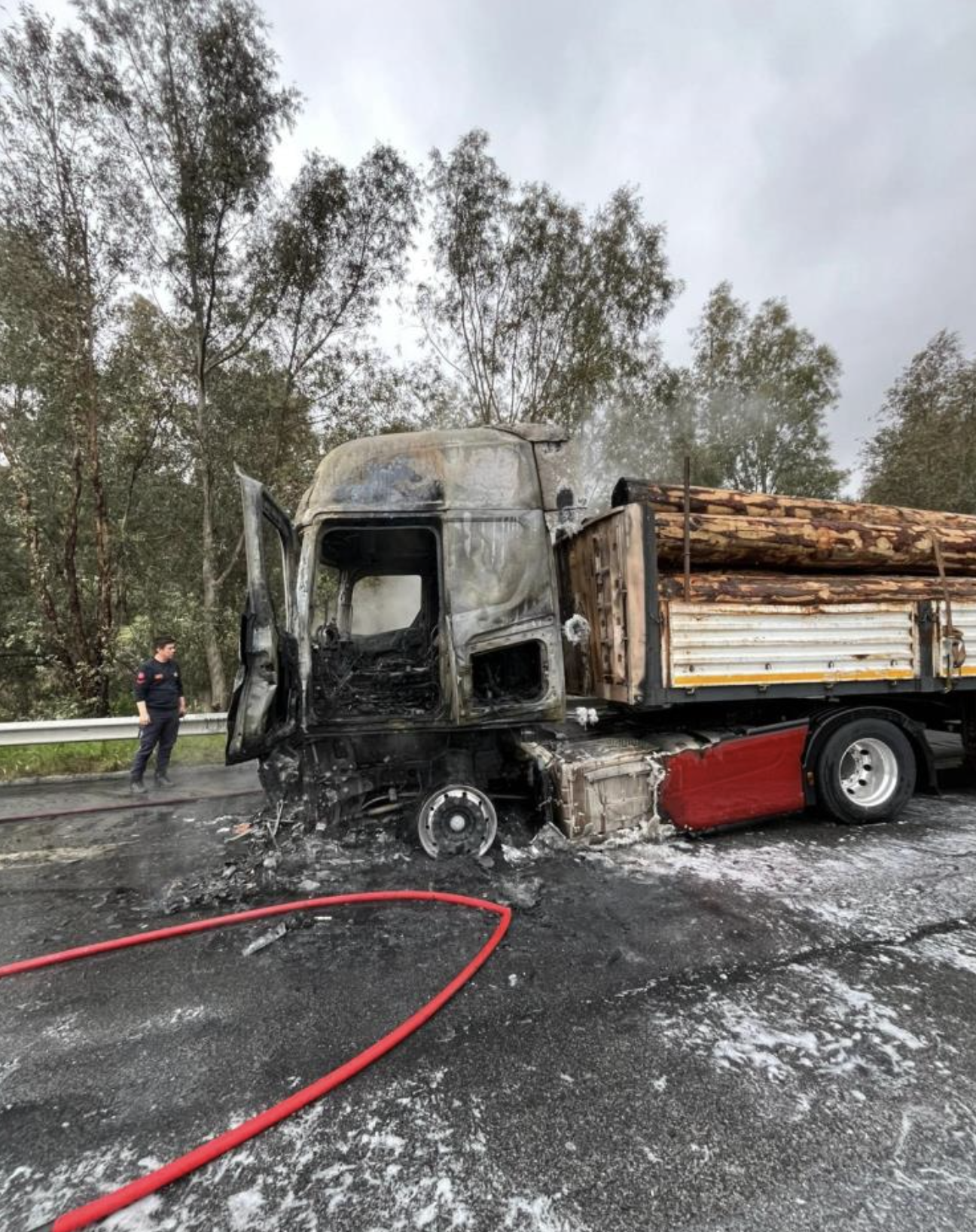 Olay, Selatin Tüneli mevkiinde meydana geldi. Edinilen bilgilere göre K.K. idaresindeki tomruk yüklü tırın ön kısmında henüz bilinmeyen bir nedenle yangın çıktı. Alevleri fark eden sürücü aracı yol kenarına çekerek durumu 112 Acil Çağrı Merkezi’ne bildirdi.