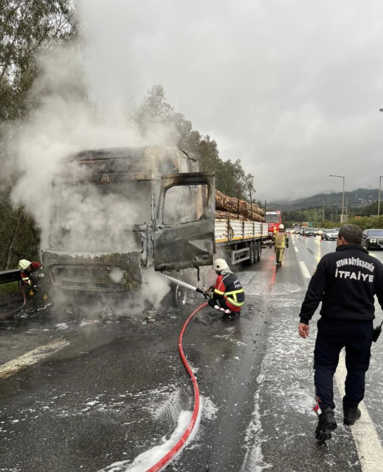 İhbar üzerine bölgeye Aydın Büyükşehir Belediyesi İtfaiye Daire Başkanlığı ekipleri sevk edildi. Kısa sürede olay yerine ulaşan ekipler, alev topuna dönen tıra müdahale etti.