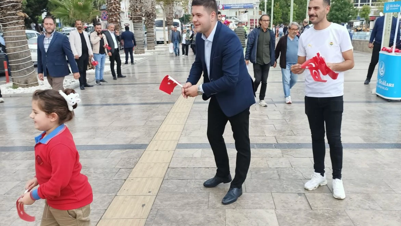 Ülkü Ocakları Başkanı Okan Bozkurt, sosyal medyada paylaşılan bazı fotoğrafların sahte olduğunu iddia ederek, vatandaşlara Türk bayrağı dağıttı. Bozkurt, “Fırat Yılmaz Çakıroğlu şehidimizi burada kimseye reklam yaptırmayız. Bugün şehitler yatağı Ülkü Ocaklarına kimse gelip ‘vatan haini’ yaftası vuramaz” diyerek tepki gösterdi.
