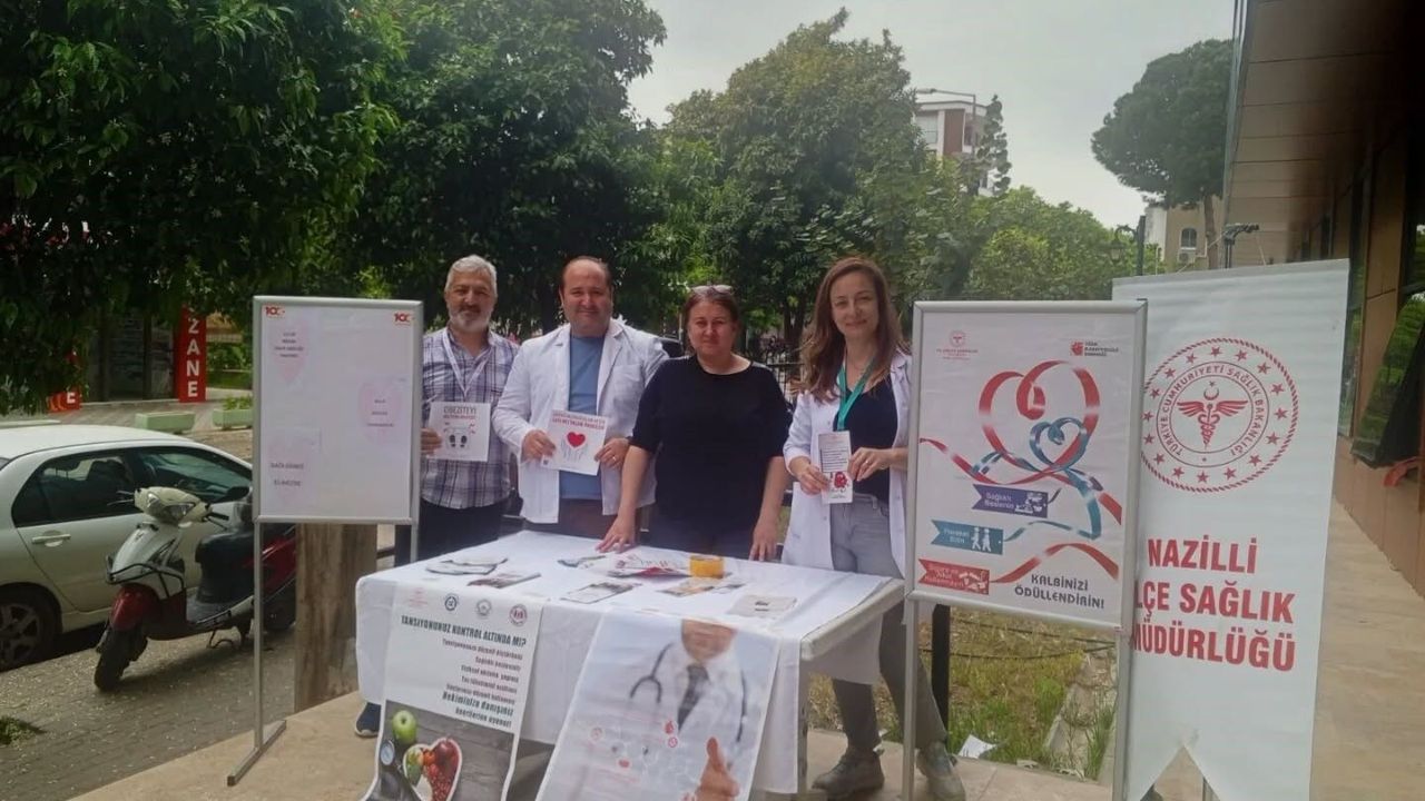 Nazilli kurulan stantta vatandaşlara kalp sağlığının korunmasına yönelik bilgiler verilirken, özellikle fazla tuz tüketiminin zararlarına dikkat çekildi. Sağlık personelleri tarafından ziyaretçilere bilgilendirici broşürler dağıtıldı.