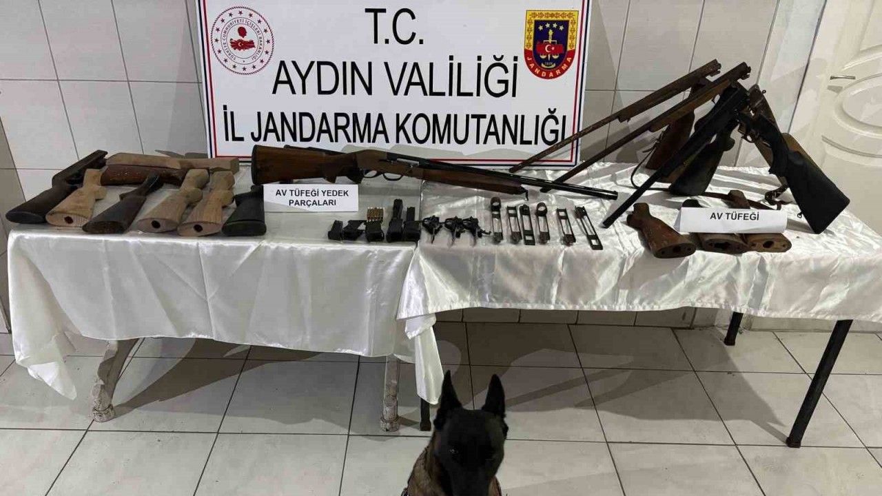 ydın genelinde jandarma ekiplerince ruhsatsız silah satışının engellenmesine yönelik çalışma gerçekleştirildi. Edinilen bilgiye göre Bozdoğan ilçesi Madran Mahallesi’ndeki ikametinde bir şahsın, ruhsatsız tüfek tamiri ve elindeki parçalarla tüfek yaptığı, tespit edildi. Yapımını tamamladığı tüfekleri satışa sunmak üzere müşteri arayışında bulunduğu öğrenilen şahsın ikameti ve bağ evinde bomba arama köpekleri ile birlikte yapılan aramalarda 1 adet ruhsatsız tam otomatik av tüfeği, 3 adet ruhsatsız av tüfeği, 13 adet tüfek kabzası, 3 adet tüfek gövdesi, 6 adet tüfek mekanizması, 4 adet tabanca kabzası, 3 adet tetik tertibatı, 1 adet tabanca üst kapağı, 3 adet tabanca şarjörü ve 31 adet 9 mm fişek ele geçirildi. Yakalanarak gözaltına alınan şüpheli şahıs hakkında adli işlem başlatıldı.