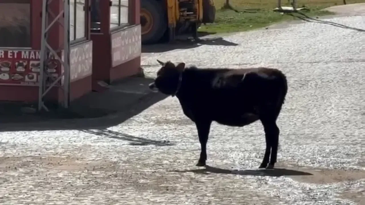 Yaz boyunca aynı otlakta birlikte otlayan iki ineğin ayrılık anı, bir vatandaş tarafından cep telefonu kamerasıyla kaydedildi.