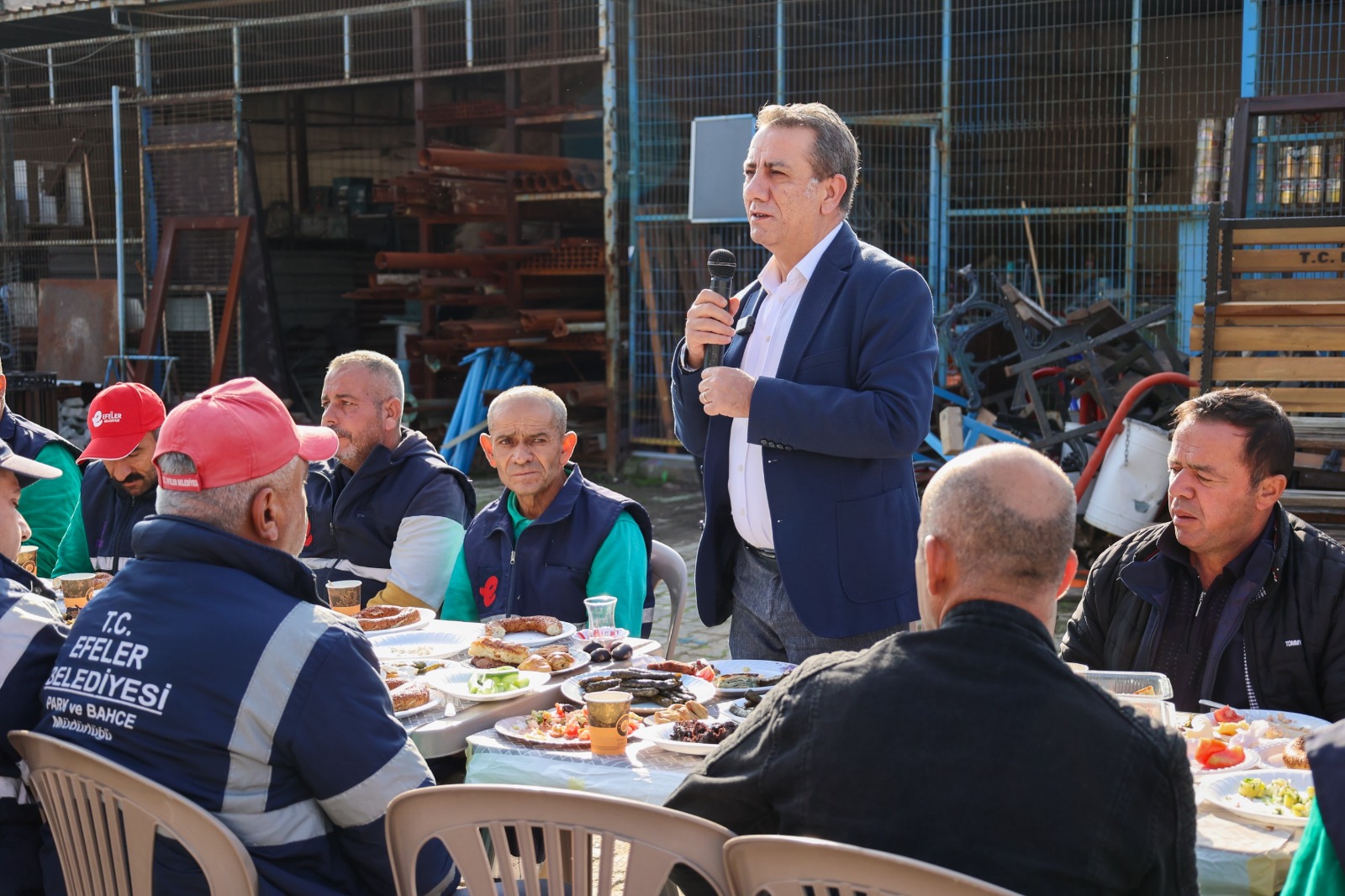 Belediye hizmetlerinin özverili personel sayesinde kent genelinde aksatılmadan sürdüğünü belirten Yetişkin, “Her birinizin emeği ve gayreti bizim için çok kıymetli. Hepimiz, Efeler’e en iyi şekilde hizmet edebilmek için varız. Gösterdiğiniz titiz çalışmalar, kentimizin güzelleşmesine ve vatandaşlarımızın yaşam kalitesinin artmasına büyük katkı sağlıyor” ifadelerini kullandı.