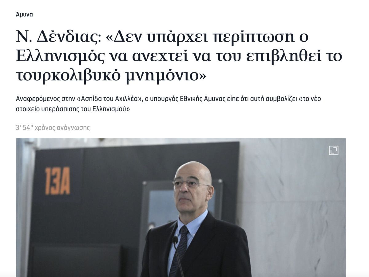 "Küresel Bir Bakış Açısıyla Yunanistan" başlıklı bir forumda konuşan Dendias, Yunanistan'ın 1952'de NATO'ya katıldığından beri stratejik bir çelişkiyle boğuştuğunu belirterek, ülkenin en büyük güvenlik riskinin Türkiye'den kaynaklandığını savundu.